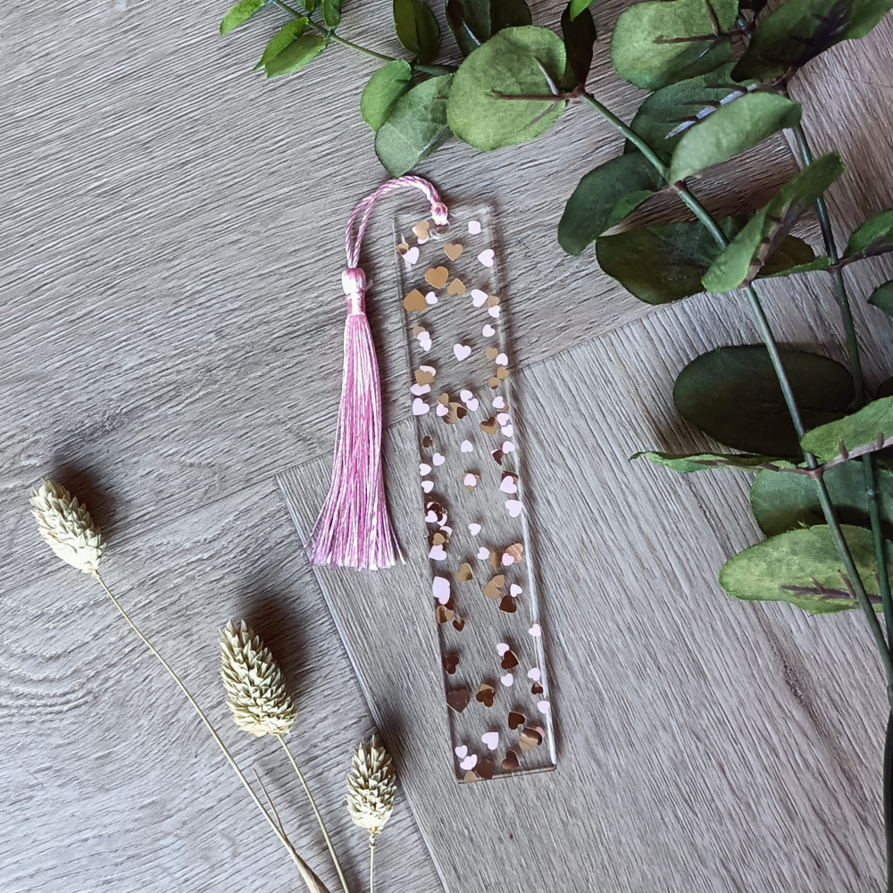 Love to read! Deze schattige boekenlegger met roze- en goudkleurige hartjes is gewoon gemaakt voor jouw boek!