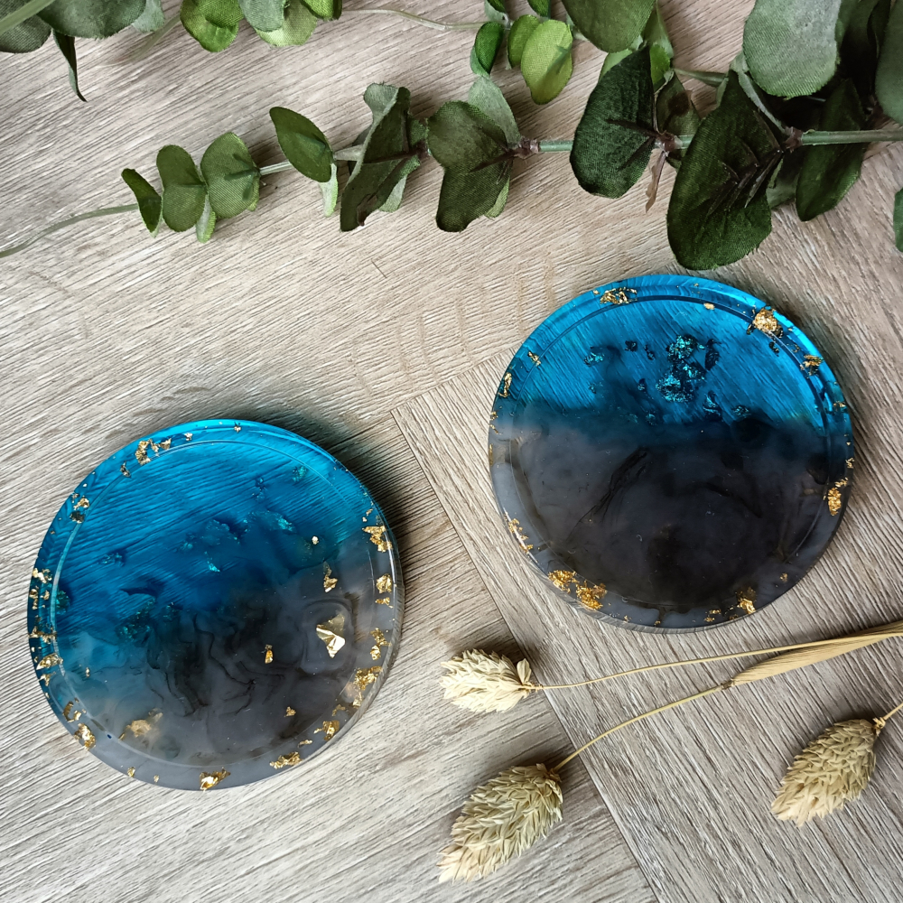 Tevens erg leuk om te gebruiken als sieraden schaaltje. Gemaakt van epoxy. Set van 2.